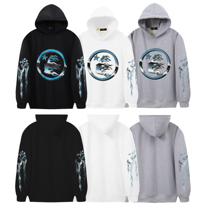 The Grey Hellstar Hoodies feature a stylish design that is sure to turn heads. The unique grey color is both modern and trendy, making it perfect for anyone looking to update their wardrobe.