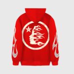 - Exclusive Design: The Hellstar Sports Red Hoodie boasts a large flame logo on the back, embodying the rebellious and bold essence of Hellstar Studios. It’s a perfect addition for fans of Hellstar Records and Hellstar Clothing.